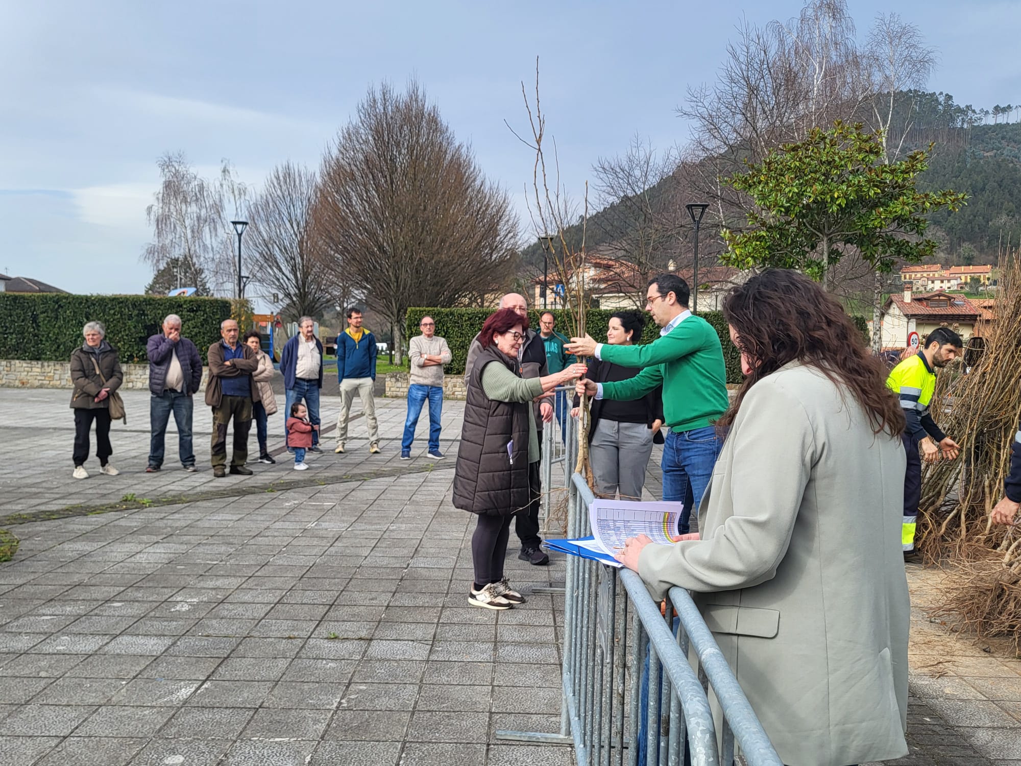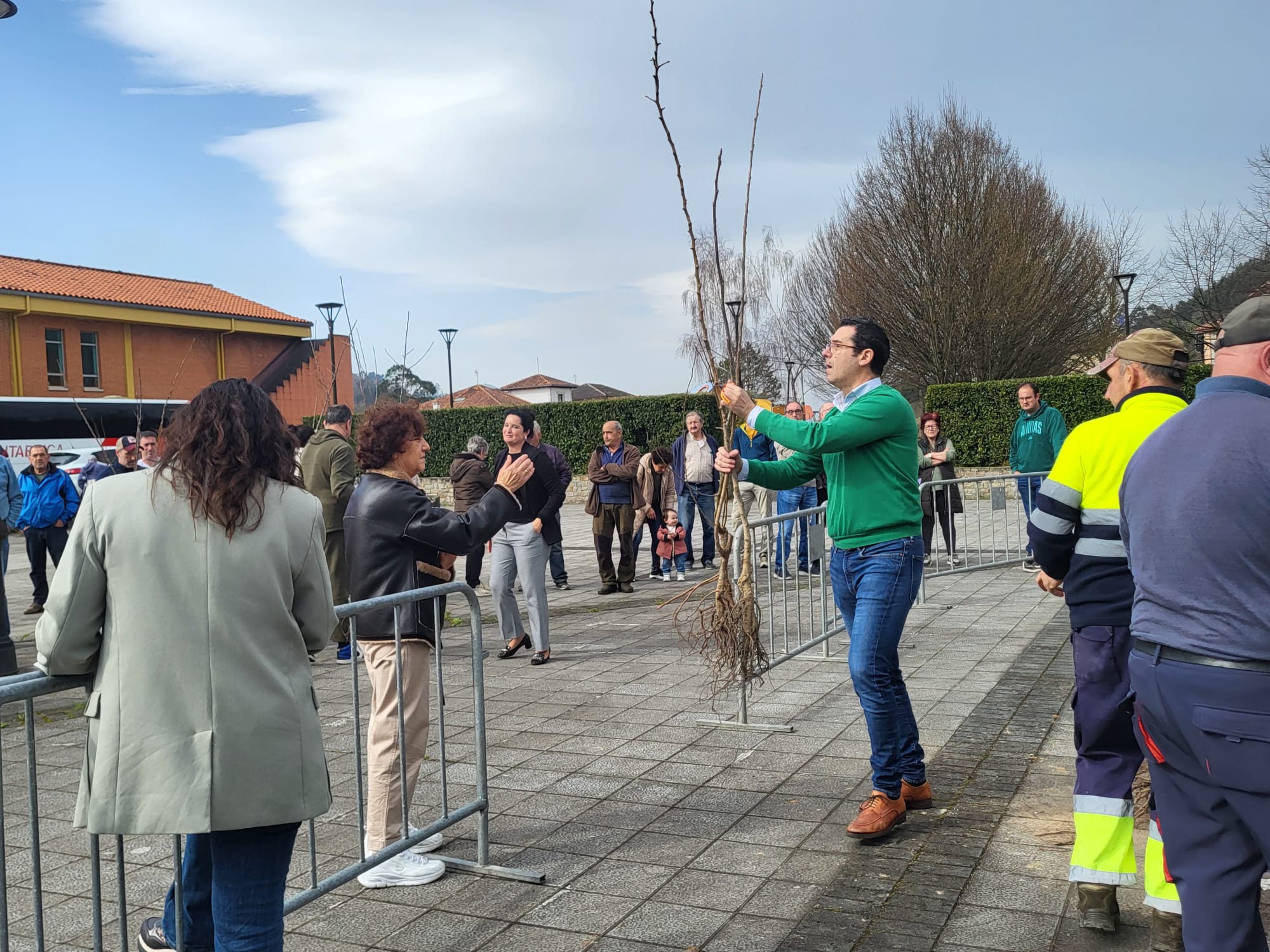 La entrega gratuita de árboles se llevó a cabo en la Plaza de la Constitución Pesués con la asistencia de Roberto Escobedo Quintana, Alcalde de Val de San Vicente, y de las dos tenientes de alcalde del municipio.